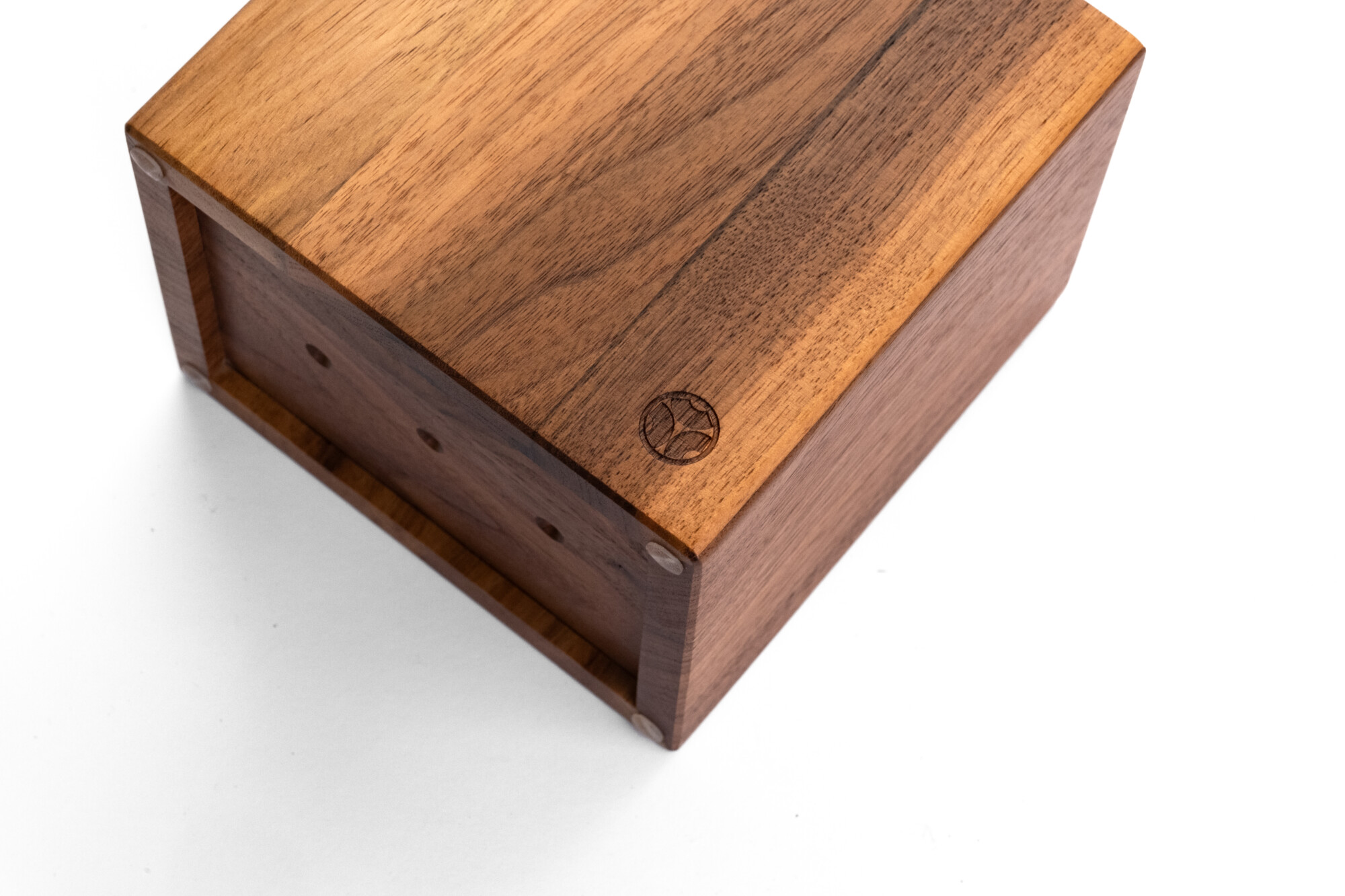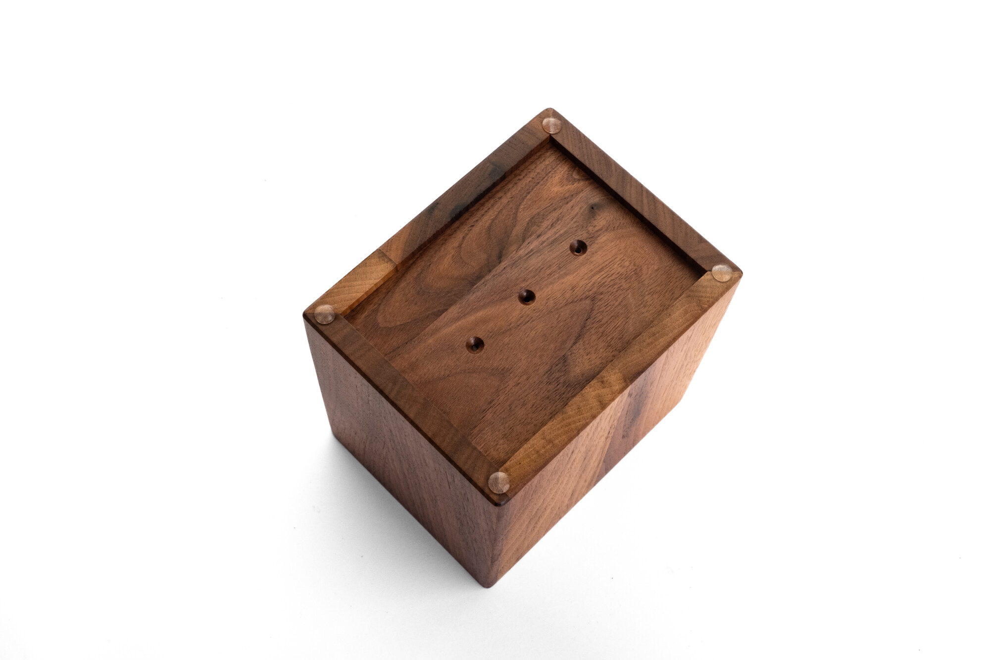 Verwandeln Sie Ihre Küchentheke mit unserem Küchenutensilienhalter aus Walnussholz in ein Statement handwerklicher Exzellenz – hier trifft alltägliche Funktionalität auf die erhabene Schönheit des natürlichen Holzhandwerks. In sorgfältiger Handarbeit aus hochwertigem Walnussholz gefertigt, erzählt jeder Halter seine eigene Geschichte durch die faszinierenden Maserungen und die satten, tiefen Farbtöne des Holzes. Die natürlichen Variationen in der Struktur des Walnussholzes machen jedes Stück zu einem Unikat und schaffen eine persönliche Verbindung zu Ihrem Küchenbereich. Er ist mehr als nur ein Utensilienhalter, er ist ein Zeugnis für durchdachtes Design und meisterhafte Ausführung. Jedes Stück wird von geschickten Handwerkern liebevoll geformt, die wissen, dass wahrer Luxus in den Details liegt – von den präzise gearbeiteten Kanten bis hin zur glatten, befriedigenden Textur, die nur durch sorgfältige Handarbeit entsteht. Der Halter wurde sorgfältig mit lebensmittelechtem Öl behandelt, das sowohl seine schützenden Eigenschaften als auch seine natürliche Schönheit hervorhebt. Diese sorgfältige Endbearbeitung bringt die charakteristischen tiefen, warmen Farbtöne des Nussbaums zur Geltung und sorgt dafür, dass Ihr Stück über Jahre hinweg schön und funktionell bleibt. Als Teil unserer Verpflichtung zu außergewöhnlicher Qualität wird jeder Halter einer strengen Prüfung unterzogen, bevor er in Ihre Küche kommt. Unsere absichtlich in kleinen Stückzahlen gefertigte Produktion stellt sicher, dass jedes Stück die Aufmerksamkeit erhält, die es verdient – denn wir glauben, dass die Werkzeuge, die Ihnen helfen, Ihre kulinarischen Erinnerungen zu schaffen, genauso besonders sein sollten wie die Momente selbst. Kombinieren Sie sie perfekt mit unserem 6-teiligen Set Küchenutensilien aus dunklem Walnussholz für einen einheitlichen Ausdruck von raffiniertem Geschmack und praktischer Eleganz.