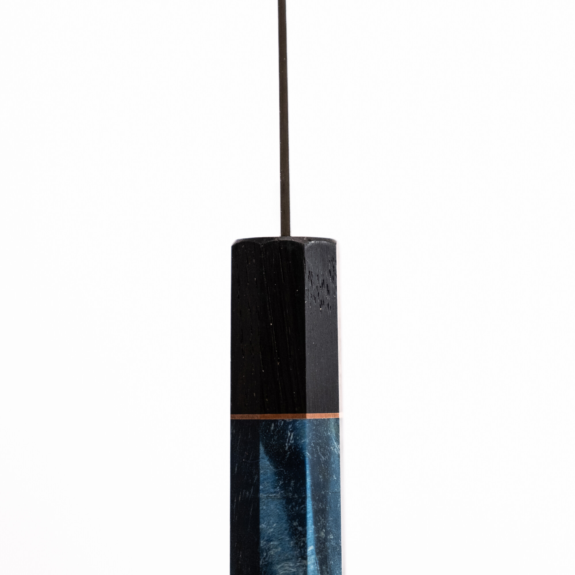 The blade’s kakumaki (collar) is made with oak bog wood. Ein Holz mit einem Alter von 2.500 bis 5.000 Jahren. Sein Alter und seine Lebensbedingungen verleihen ihm einen einzigartigen Charakter und eine reiche natürliche Farbvariation, die durch sein Alter bestimmt wird. Ihnen ein Messer mit einer reichen Geschichte zu geben.
