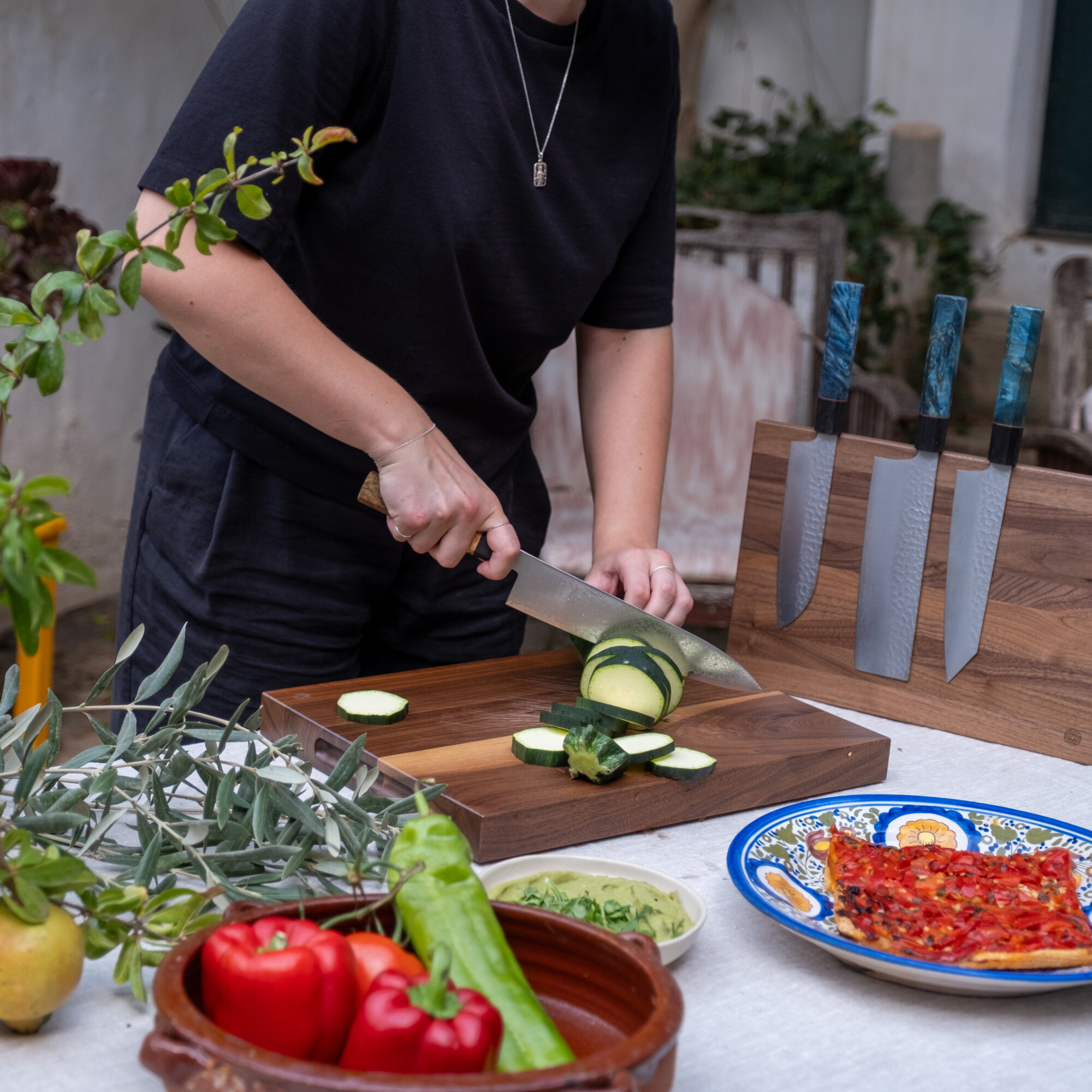 Erhältlich in mediterranem Blau, Olivgrün und Naturbraun, ist der SHIN Gyuto ein wahres Kunstwerk, das genauso schön ist, wie es aussieht. Jede Farbvariante verfügt über einen Griff aus haltbarem, stabilisiertem Holz, der einen sicheren und komfortablen Griff gewährleistet.