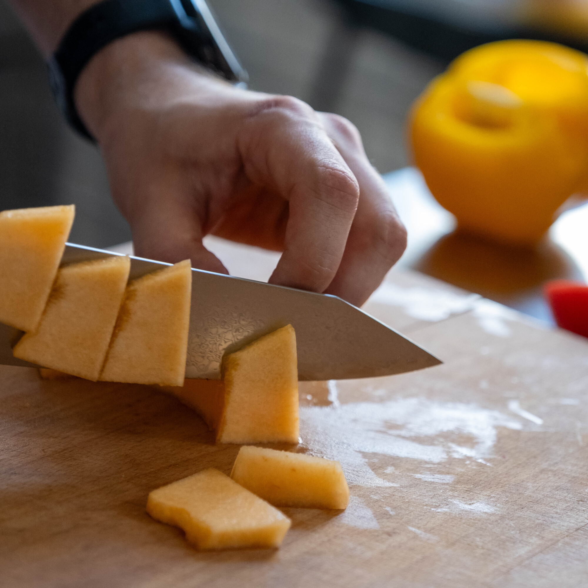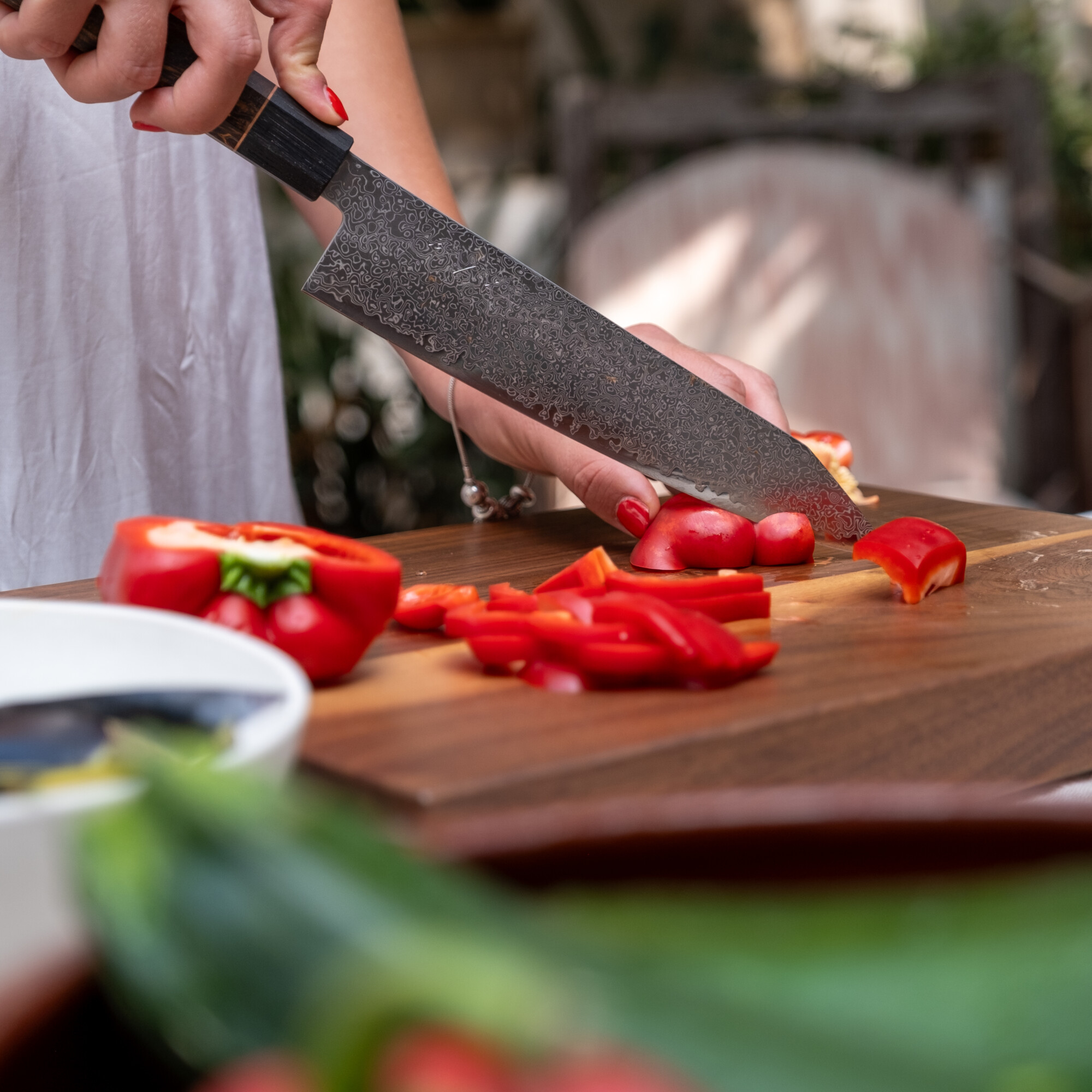 Wenn Sie eine stärker gebogene Kante für schwungvolle Schnitte bevorzugen, sollten Sie das Gyuto in Betracht ziehen. Wenn Sie jedoch ein einzigartiges, multifunktionales Messer suchen, das Präzision und ein ansprechendes Aussehen bietet, ist das Kiritsuke eine hervorragende Wahl.