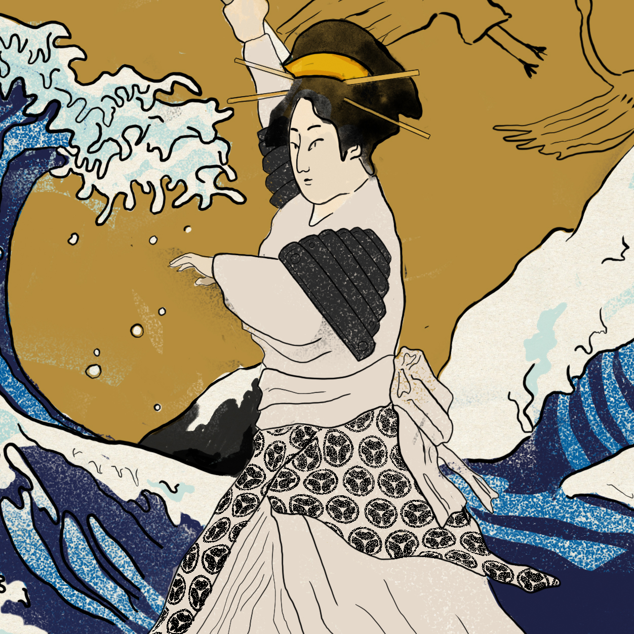 The artist masterfully incorporated iconic elements of Japanese art, such as the powerful waves of Hokusai’s “The Great Wave off Kanagawa,” and symbols like the phoenix, representing resilience and renewal. Our Oishya kamon pattern, subtly woven into the onna-bugeisha’s armour, creates a visual link between our brand and the enduring legacy of Japanese craftsmanship.