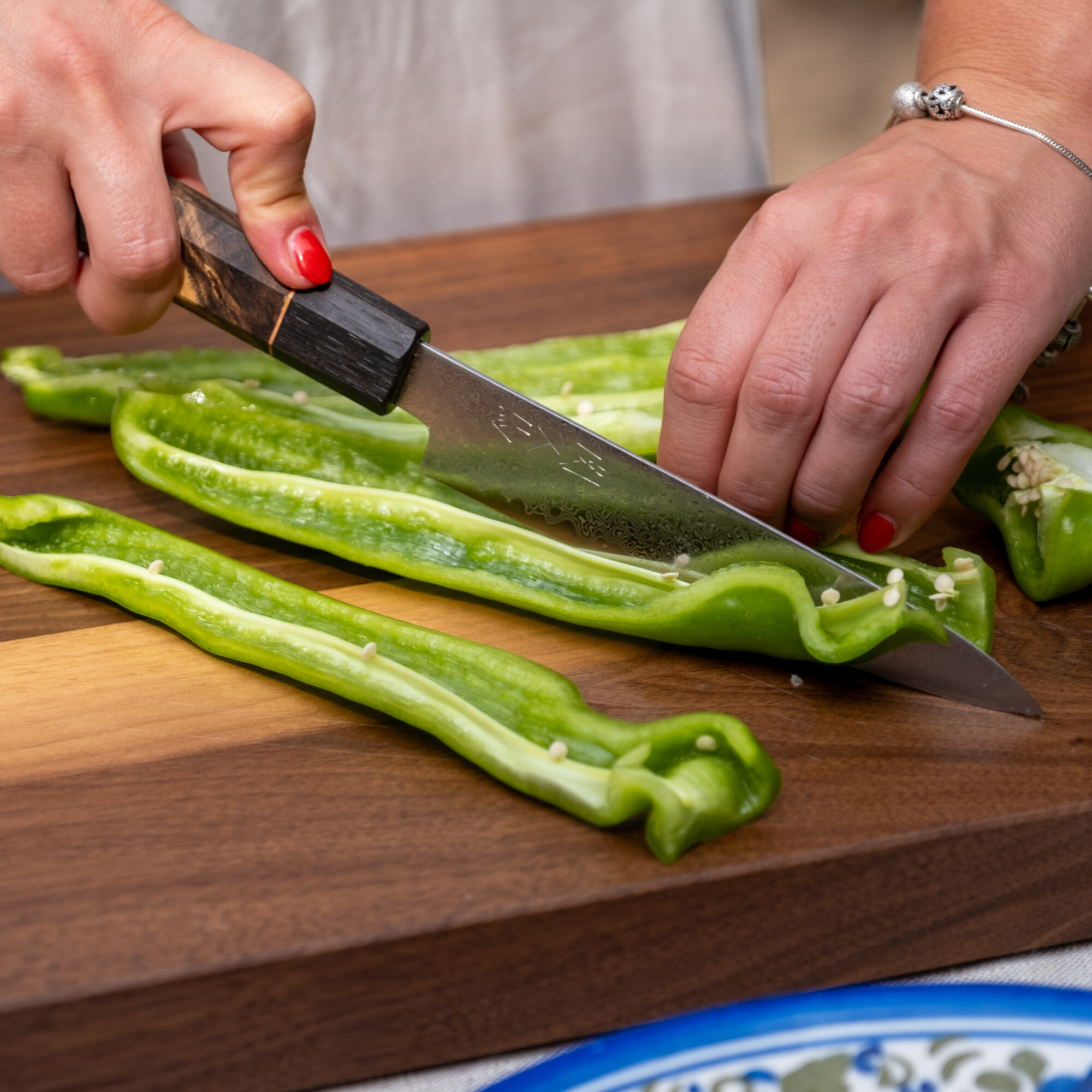 The 15cm blade length makes the Petty ideal for intricate tasks where larger knives feel unwieldy. It excels at peeling, trimming, and detailed cutting work, making it an indispensable tool for garnish preparation, delicate fruit work, or precise meat trimming. Despite its smaller size, it carries the same premium performance characteristics as the larger SHIN knives, bringing unparalleled sharpness and edge retention to your detail work.