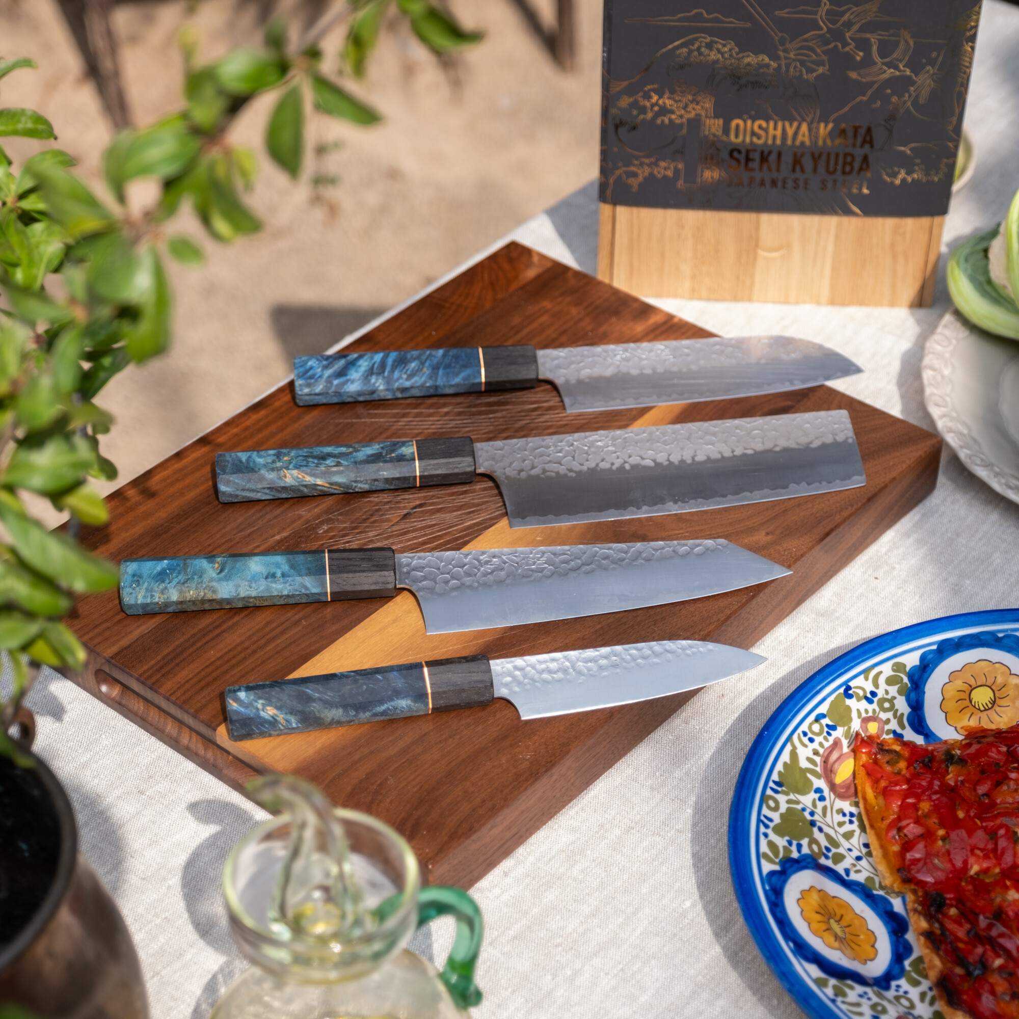 Seki Kyuba KATA Knife Set (Bunka Nakiri Petty) – Mediterranean Blue