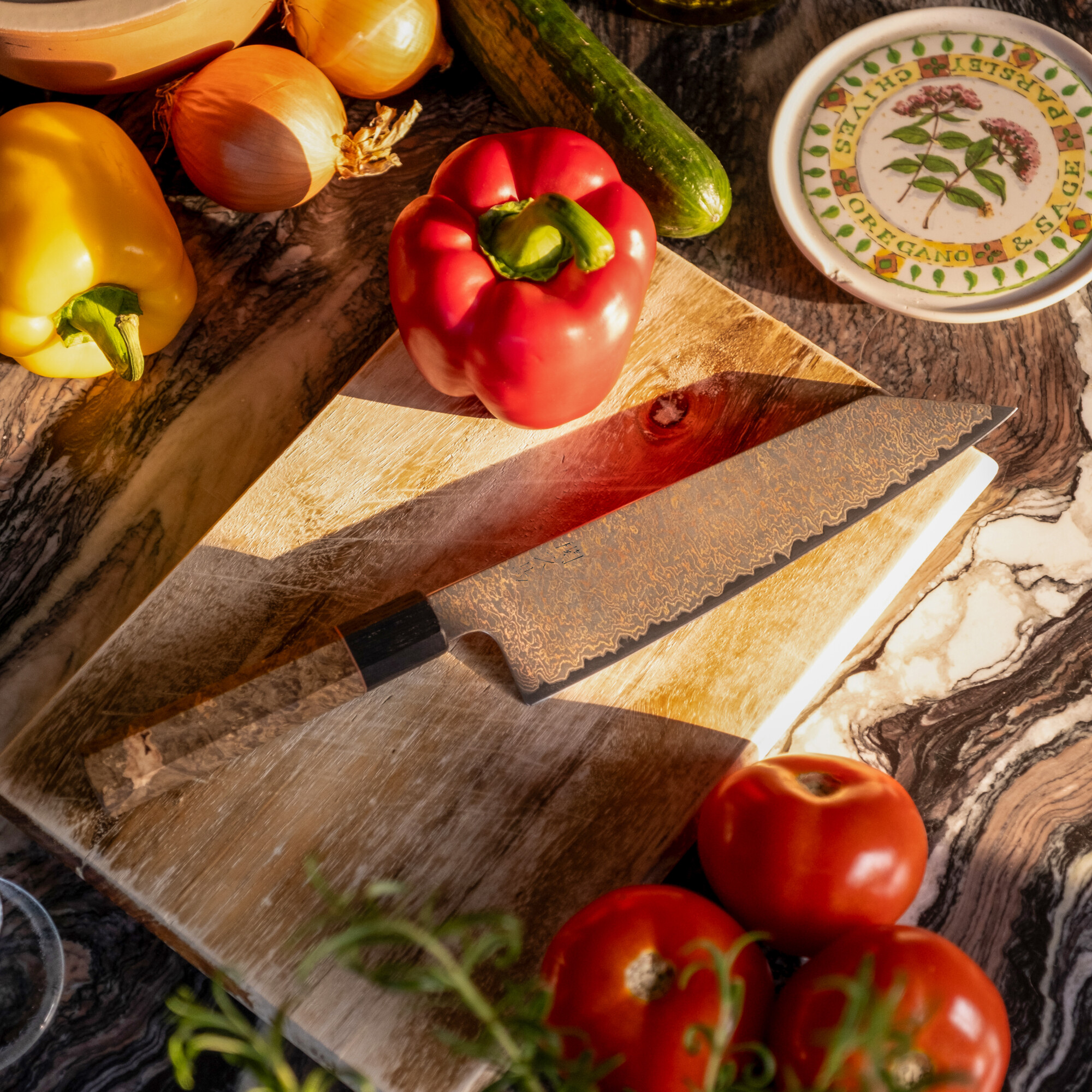 Like all NIJI knives, the Bunka isn’t just a tool – it’s a statement piece in your kitchen. Each knife features a handle crafted from durable, stabilised wood, providing both aesthetic appeal and a comfortable, secure grip. Perfect for those who view cooking as both a culinary and visual art form, the NIJI Bunka transforms your kitchen into a gallery while delivering incredible cutting performance.