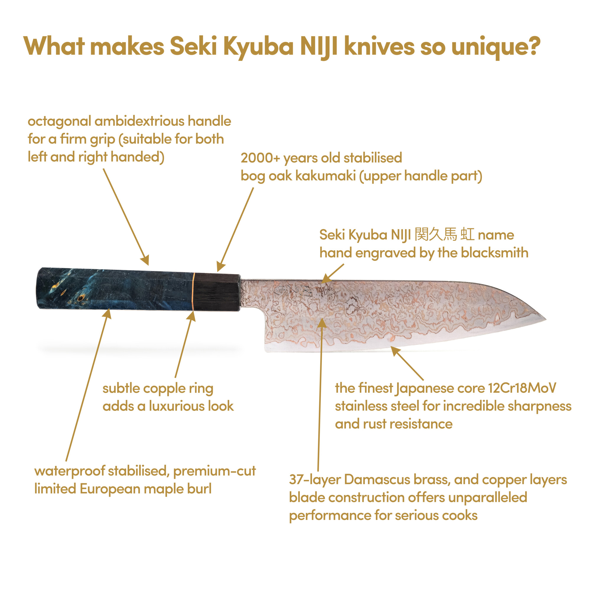 Our partnership with one of the most talented and prominent blacksmiths of Japan resulted in Seki Kyuba kitchen knives, that are perfect for those that demand the highest quality. Being part of the Japanese knife community and owning a knife like this is a great honour and pleasure. We welcome you to Kyuba knives world.