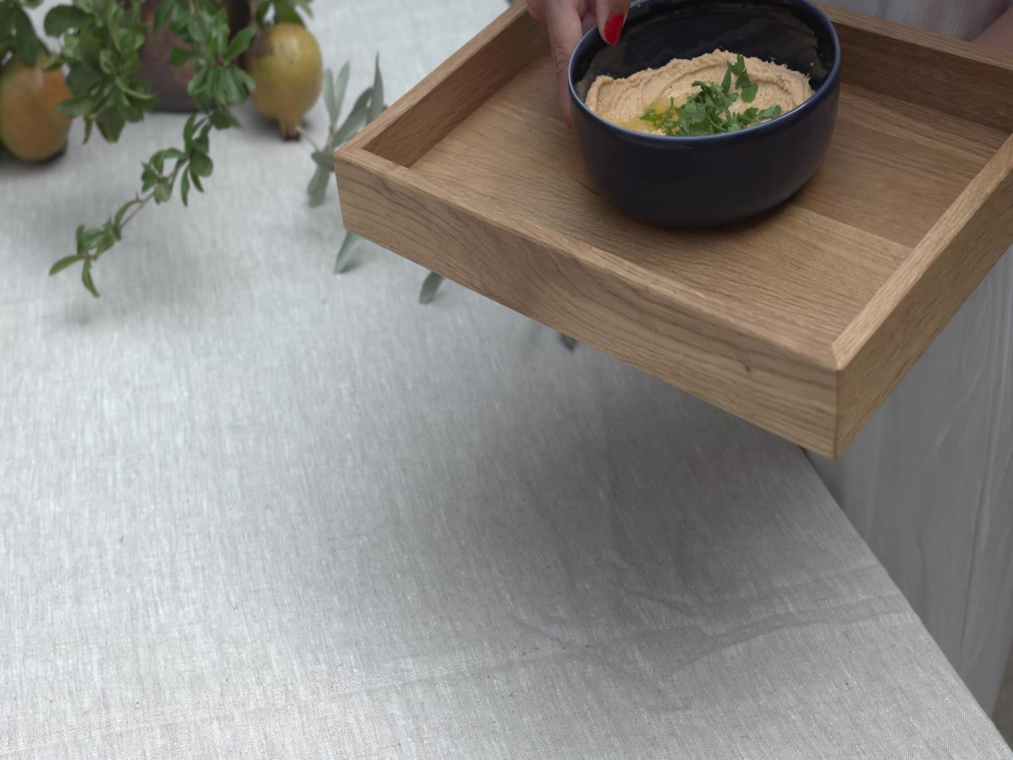 The European oak wood’s light, warm tones create a fresh and welcoming ambiance, making this tray a perfect addition to any room in your home. The smooth, well-crafted surface is not only visually stunning but also easy to clean and maintain, ensuring that your tray remains a cherished possession for years to come.